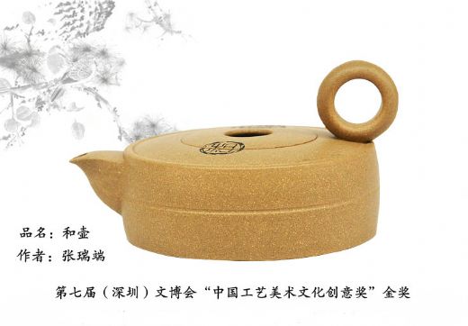 张瑞端,出生于陶艺世家,高级工艺美术师,中国工艺美术协会理事,广东省工艺美术协会副会长。广东省工艺美术研究所——紫砂艺术中心主任,研究员,荆瀛轩艺术总监。其作品多次荣获国家级和省级大展金奖﹑多件作品被“中国工艺美术馆”收藏。 《和》紫砂壶为高级工艺美术师张瑞端辛卯春之新作所,其作品以独特的塑造,简练的壶语,深远的寓意把中国传统文化的“和”演绎得淋漓尽致。此作借鉴了中国象棋的设计元素加以提炼创作而成,整个壶用象棋子的形象为塑造,利用几个同心圆和相交圆的线条组合成整个壶身、壶把、壶钮,壶身并点缀着“将”“相”两棋子,直取“和”的寓意,造型洗练,立意巧妙。 此作在外观设计上几个同心圆和相交圆的线条组合,暗喻“和”之意蕴,《说文》说:“圆,全也。”《吕览审时》说:“圆乃丰满也。”圆即圆满、周全、完备等之意。古人还有“圆而神,方以智”之说,其中圆指行为处事所谓的“通、活、融、满”,神即“神、通、广、大”的宇宙观。可见圆之于古人,不但成为图腾崇拜的象征,也赋予方圆思辩的哲学意象。而八卦太极图,一个由黑白二鱼盈满闭合的圆,囊括了宇宙的一切变化夤缘和万物相辅相成的和谐本质。壶作者巧用圆线组合成壶,无论从视觉上和暗喻中都是直奔“和”的主题。而壶身点缀着“将”“相”两棋子,以廉颇蔺相如列传的将相和典故直取“和”的寓意,作者的创作用意乃从不同角度给品赏者以“和”的共鸣。 “和”自古至今是一个非常重要的概念,它是指一种有差别的、多样性统一,比如烹调,必须使酸、甜、苦、辣、咸调合在一起,达到一种五味俱全、味在咸酸之外的境界,才能算是上等佳肴;比如音乐,必须将宫、商、角、徾、羽配合在一起,达到一种五音共鸣、声在宫商之外的境界,才能算是上等美乐。无论从自身、家庭、国家、国际社会乃至人与自然,无不求和。作者以“和”命题,融历史典故于造型,可谓独具匠心,是一位工艺美术师从工艺角度对“和”的演绎和阐释。 |
