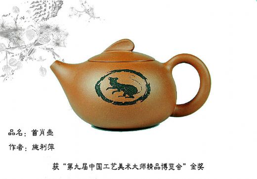 百年老字号“裕德堂”的第四代传人张瑞端在2007年年中的一天偶遇广东省工艺美术协会会长张春雷。当时,擅长中国传统十二生肖设计雕刻的张春雷对张瑞端提出了这样一个问题———能不能合作做出一套以生肖文化为主题的紫砂壶作品? 两人灵感碰撞的那时是鼠年临近。鼠,恰是十二生肖之首。 张春雷绘出了“首肖壶”的草图,把它交给了在潮州的张瑞端。张瑞端其人,不仅继承了家族百年制壶经验,同时在宜兴开办紫砂壶作坊吸收当地的制壶精髓。拿到草图后经过了足足半年,张瑞端终于在鼠年春节前制出了能够符合设计者和制作者理念的样品,这个作品被命名为《智者鼠》。 这样一把茶壶推出后,就在当年举行的第九届中国工艺美术大师精品博览会上获了金奖。