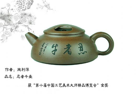 借牛年之嘉时,弘开牛运焉。牛年来临之前,一件由广东省工艺美术协会会长张春雷和高级工艺美术师张瑞端共同设计,施利萍制作的以牛为题材的紫砂壶“忍者牛”在瓷都潮州市枫溪问世。 一提到“牛”,国人眼前便会出现默默耕耘在田间的该动物景象,而这件工艺品为何命名“忍者牛”呢?张瑞端说:“在人们心目中,牛任劳任怨,刻苦勤劳,故以此命名。” 细观该紫砂壶,壶身以扁圆造型为主,但又不同于扁壶,上小下大底部平,恰似一只卧在地上的大水牛,微微上翘的壶嘴,好像是抬头观望的牛头,粗壮的壶把就像大水牛尾巴,壶盖镂空,一改传统紫砂壶上的壶钮,左右各雕两个椭圆形,既有壶钮功能,又恰似卡通造型的牛眼睛,各方面比例协调,线条简单,但整体又显得大方,设计独具一格,看出创作者的一番良苦用心。 设计者借紫砂为载体,传承生肖文化,既注意题材的民族性和传统特色,又特别着重于创新和体现时代特点,令作品在品赏之余,更添几分怀古情绪和对传统文化的思考。据了解,该壶从设计到制作,历时近一年,方案几番修改,在去年底才创作成功,刚出炉的“忍者牛”紫砂壶还在最近第十届上海国际艺术节上夺得创新金奖,为瓷都争光,令艺界瞩目。 |